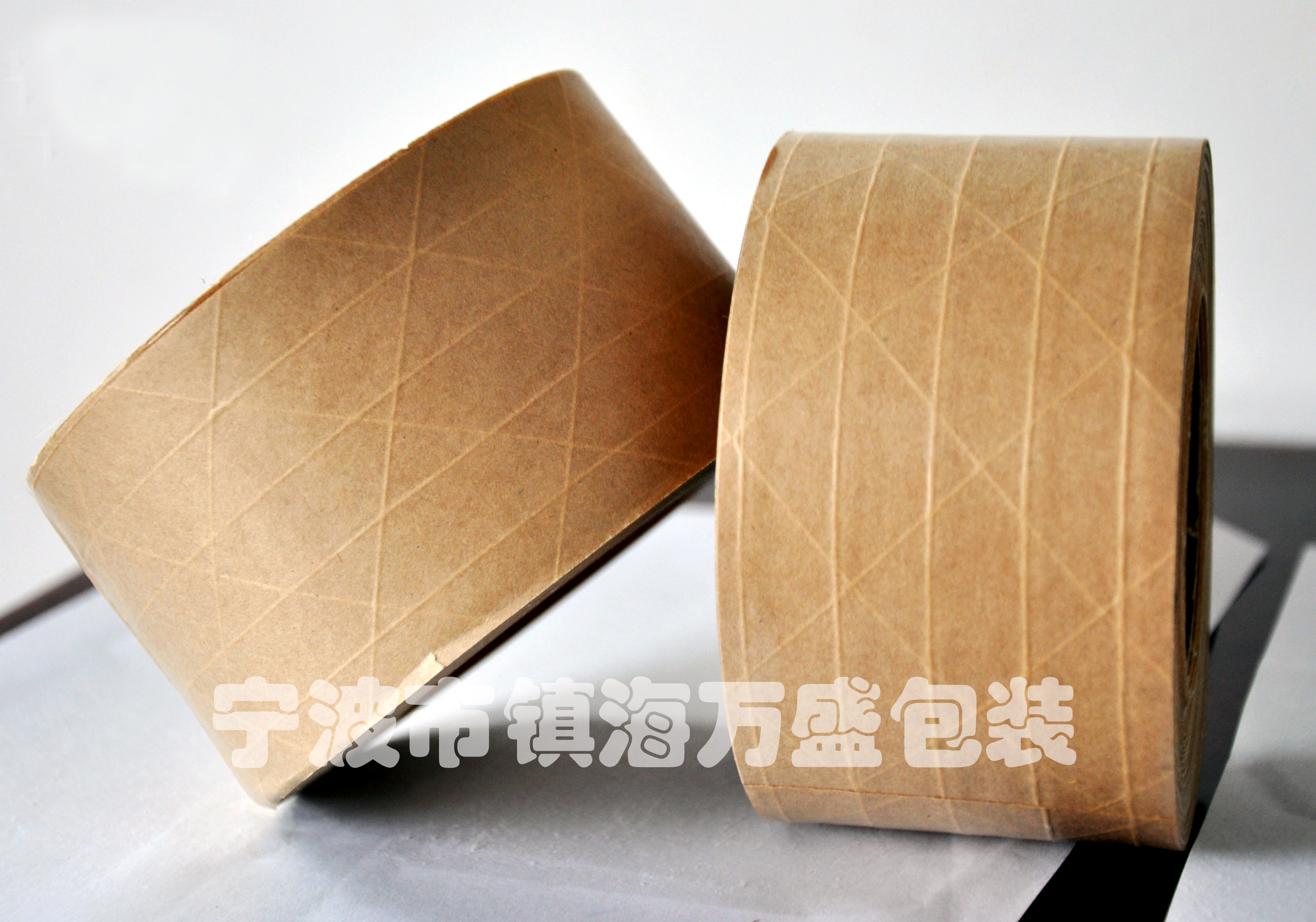 免水牛皮紙膠帶以高強度牛皮紙為基材,涂熱敏膠而成。濕水牛皮紙膠帶以牛皮紙為基材,以變性淀粉為粘合劑制造而成。須濕水后方可產(chǎn)生粘性,其具有可在牛皮紙上書寫之特點。適用于出口紙箱封口或遮蓋紙箱字跡。
